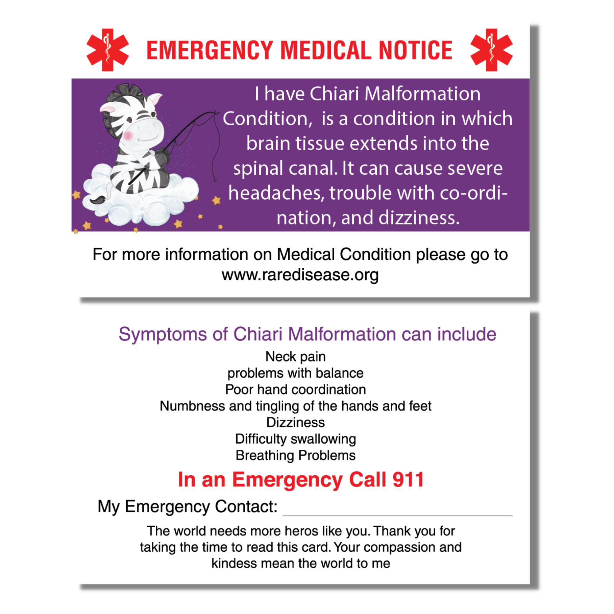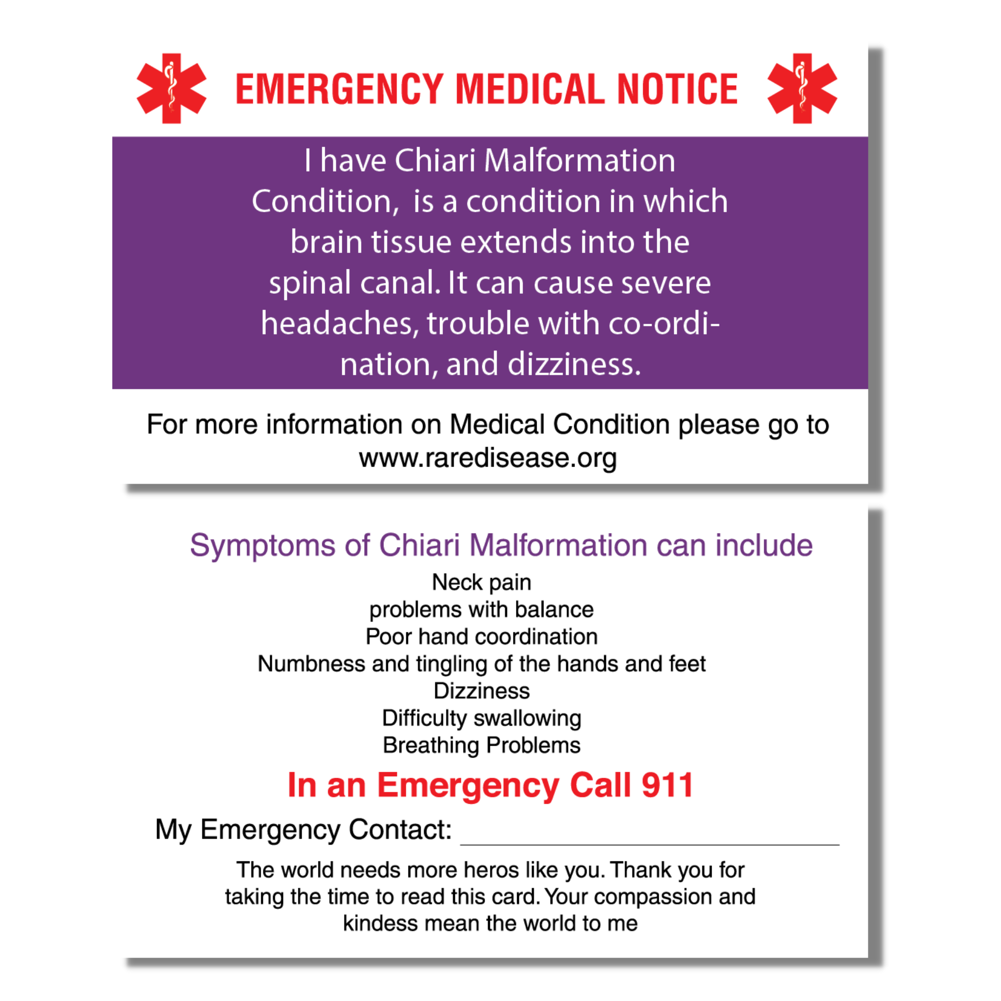 Emergency Medical Card: Chiari Malformation