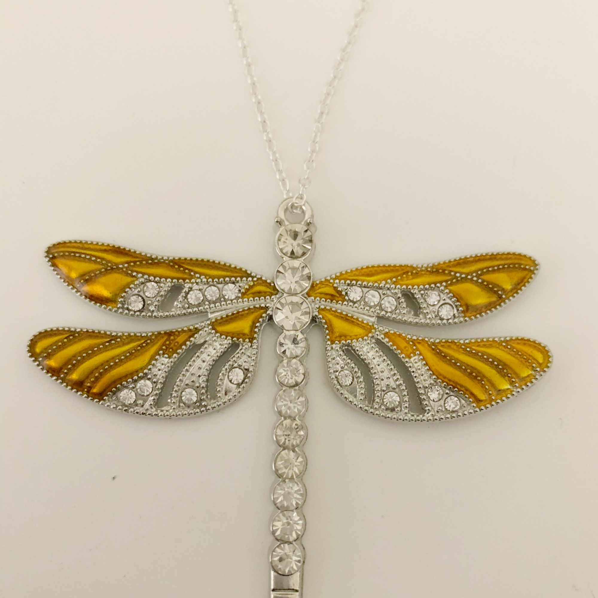 Dragonfly is made of platinum plated zinc alloy that is zinc and lead free. It measures approximately 64 mm wide by 57 mm long.